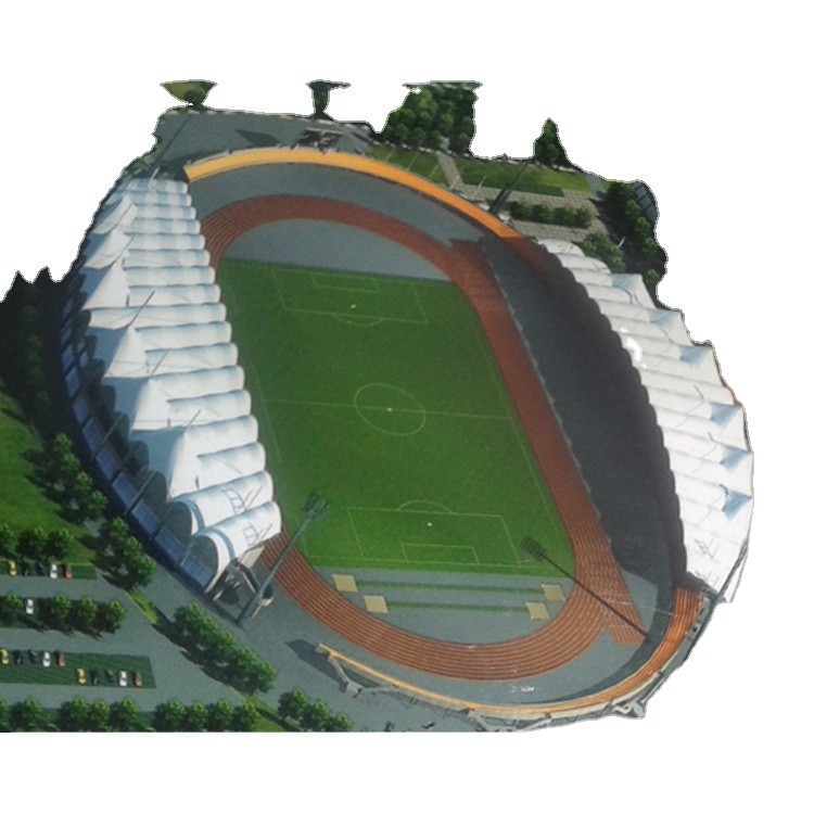 Estructura de membrana de arquitectura tensada de PVC/PVDF, diseño estructural de techo de sombra de estadio, carpa de fútbol, deporte de acero prefabricado